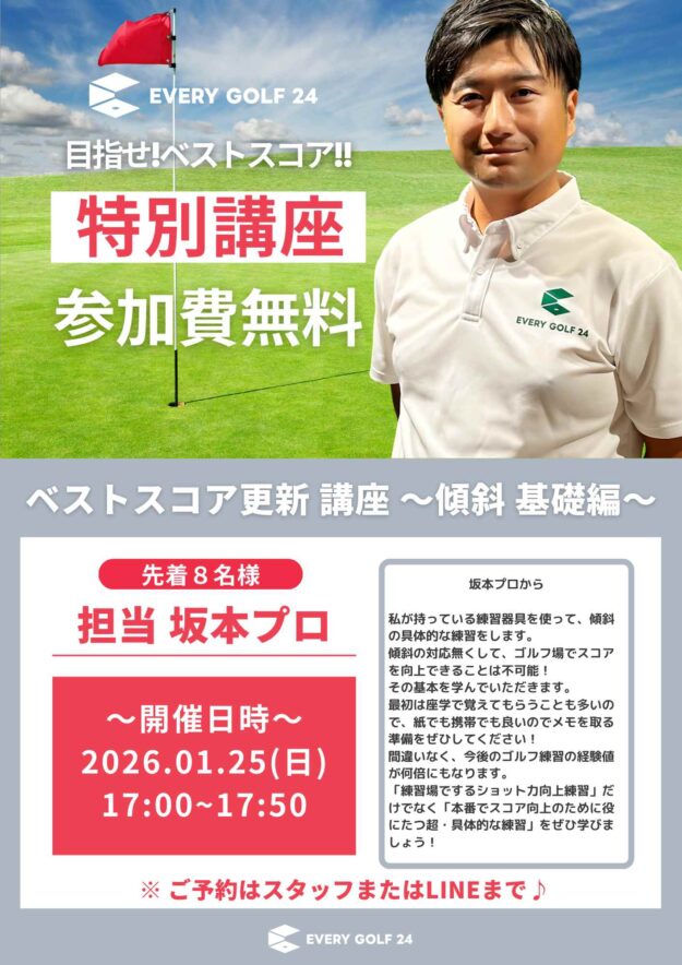 ベストスコア更新 講座 〜傾斜 基礎編〜 EVERY GOLF 24では、ベストスコア更新を目指す方向けの「特別講座」を開催いたします。 今回のテーマは「傾斜ショットの基礎」です。 傾斜への対応は、ゴルフ場でスコアを…